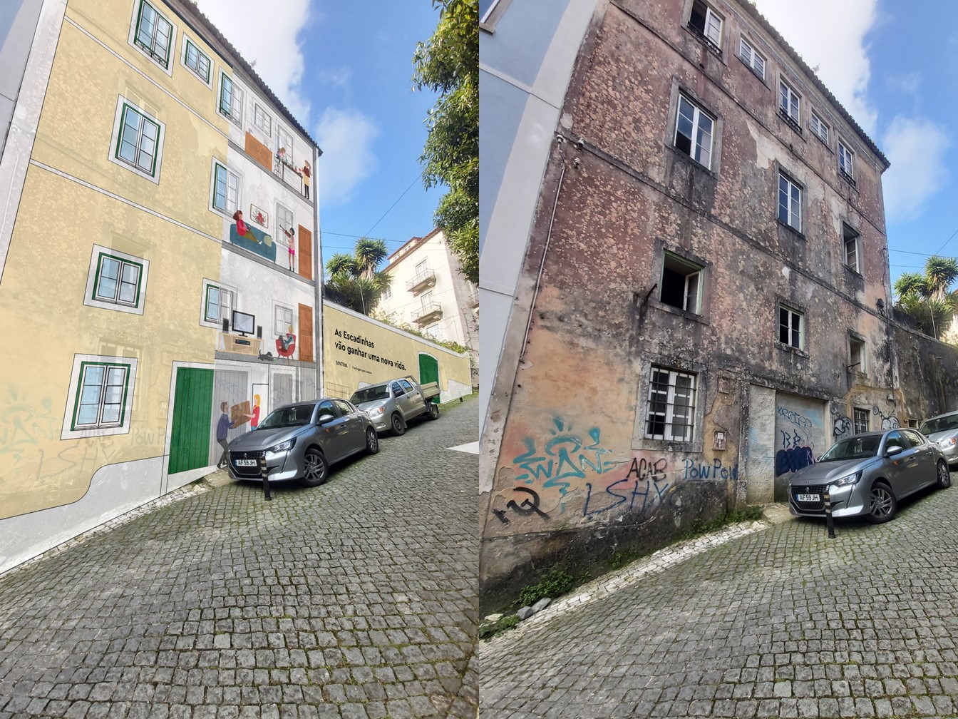 3 Lonas para fachadas da empreitada nas Escadinhas do Hospital.